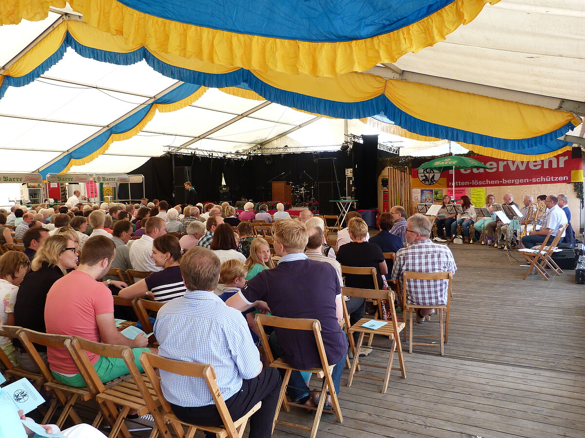 Am 27. 7. 2014 veranstaltete die Freiwillige Feuerwehr zusammen mit den evangelischen Gemeinden einen gemeinsamen Gottesdienst. Auch die Evangelisch-lutherische Kirchengemeinde Rödinghausen verzichtete auf ihren eigenen Gottesdienst zugunsten des Gottesdienstes im Festzelt am Haus des Gastes. Herbert Pohler von unserer Kirchengemeinde übernahm die Lesung. Als Festprediger war Matthias Brandtner gekommen, der über "die längste Rettungsleiter der Welt" predigte. Begleitet wurde der Gottesdienst vom Posaunenchor unserer Kirchengemeinde. Der Gottesdienst stand unter dem Motto: " Gott zur Ehr, dem Nächsten zur Wehr".