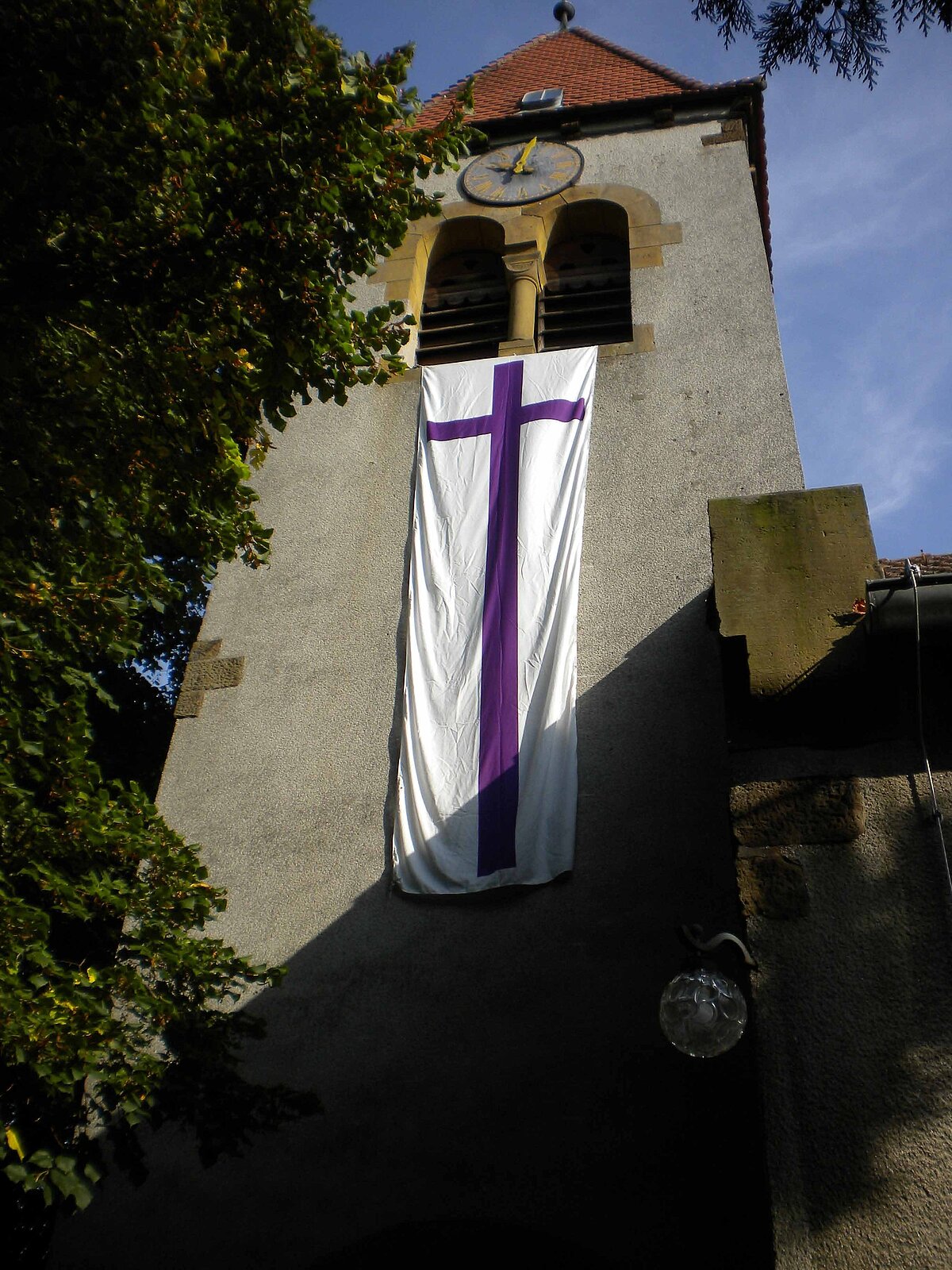 Anlässlich des Kreisgeschichtsfestes fand am 7. September in der Bartholomäuskirche ein plattdeutscher Gottesdienst mit Pastor Schlüter statt. Am Nachmittag wurden Führungen durch die Kirche angeboten, bei denen auch alte Bilder aus der Kirchengemeinde zu sehen waren und eine alte aber noch sehr gut erhaltene Altardecke, in die christliche Motive gewebt waren. Das nebenstehende Bild versucht, einen Teil eines Abendmahlmotivs wiederzugeben. (Zur Verdeutlichung musste der Kontrast bearbeitet werden, so dass die weiße Farbe der Decke im Foto nicht erhalten blieb.)