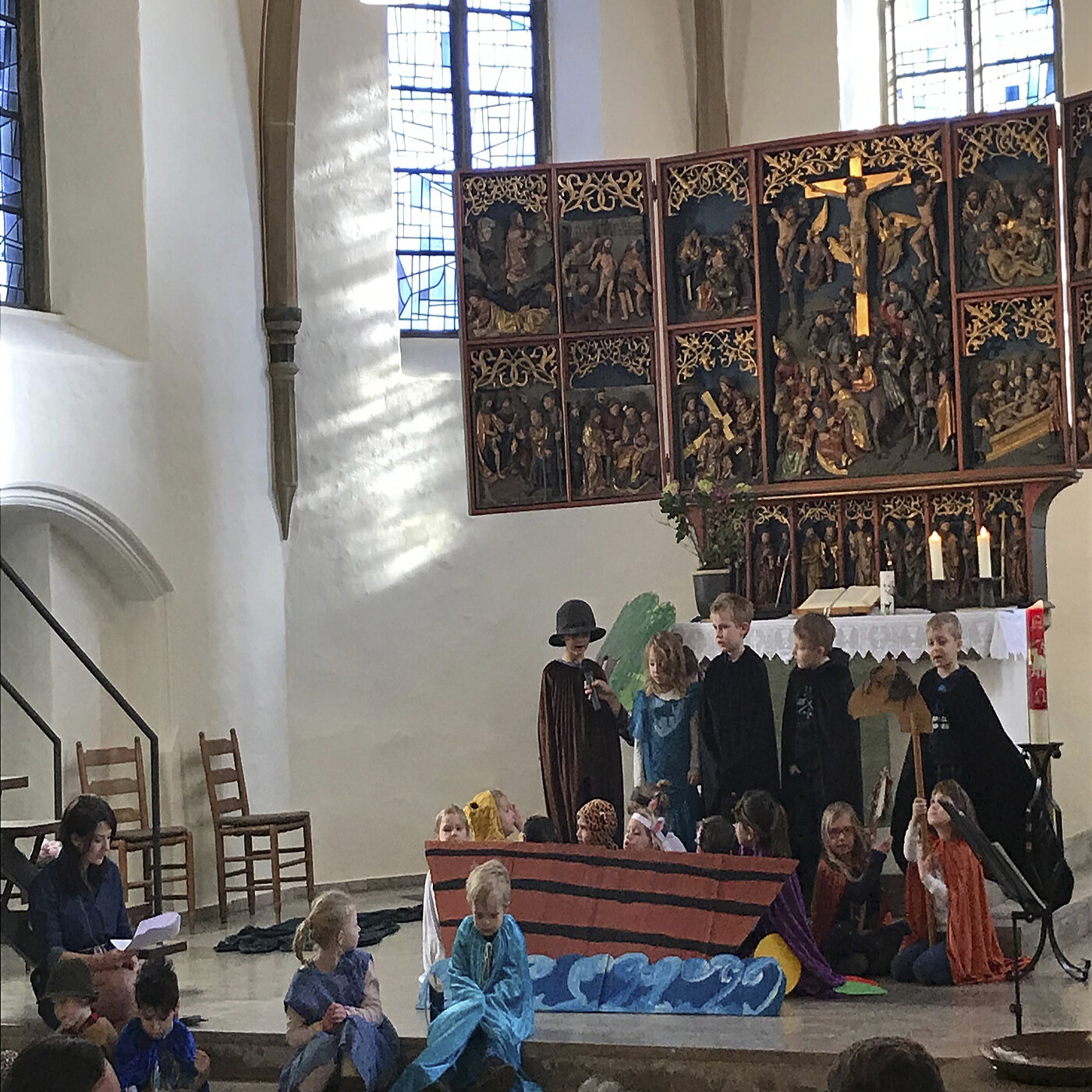 Großes Interesse fand am Sonntag, dem 24.2.2019, der Familiengottesdienst - gestaltet vom ev. Kindergarten Schwenningdorf. Das Thema war: "Noah und die Arche". Die Kinder des Kindergartens führten das Spiel "Noah und die Arche" auf und stellten in entsprechenden Kostümen und mit eigenen Kommentaren dar, wie und warum die Tiere auf die von Noah erschaffene Arche kamen. In einem anschließenden Filmbeitrag, kommentiert von Pfarrer G. Tebbe, wurde die Geschichte erneut dargestellt. Auch die Kinder waren von diesen Darbietungen so beeindruckt, dass sie sehr aufmerksam zuhörten. Darüber hinaus präsentierte sich der Kindergartenchor mit verschiedenen Liedern.- Ein eindrucksvoller Gottesdienst.
