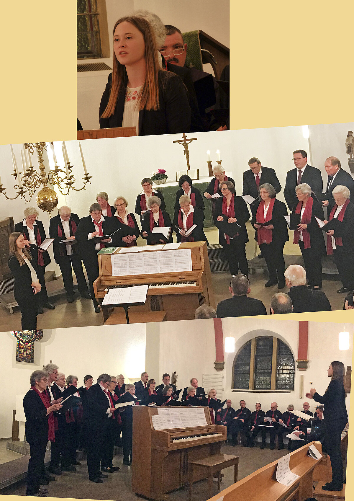 Friederike Beckmann präsentierte sich als Chorleiterin des Singkreises Rödinghausen, als Pianistin und als Solistin im Chor des MGV Rütli Buer mit dem Stück "Wenn ich ein Glöcklein wär" von Franz Xaver Engelhart. - Ein Stück, das durch den Kontrast zwischen dem Männerchor und dem klaren weiblichen Sopran besonders reizvoll war und mit großem Applaus bedacht wurde. So war es insgesamt ein gelungener Abend, der einen musikalischen Bogen spannte von Komponisten aus dem 17. bis zum 20. Jahrhundert.