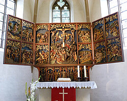 Damals war sie Patronatskirche der Äbtissin von Herford. Möglicherweise hat sie noch viel früher als Holzkirche bestanden. Wilhelm v.d.Bussche, Erbherr zu Waghorst, hat die Kirche 1509 vergrößern lassen, ihr gotische Formen gegeben und 1520 den geschnitzten Flügelaltar gestiftet, der in 13 Bildern die Passionsgeschichte Jesu, Kreuzigung, Auferstehung, Himmelfahrt und Jüngsten Tag zeigt. Eine ausführliche Darstellung des Altars findet sich auf der Seite "Das Altarbild".