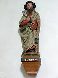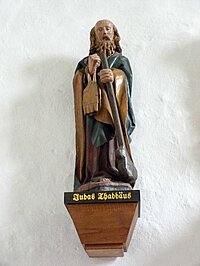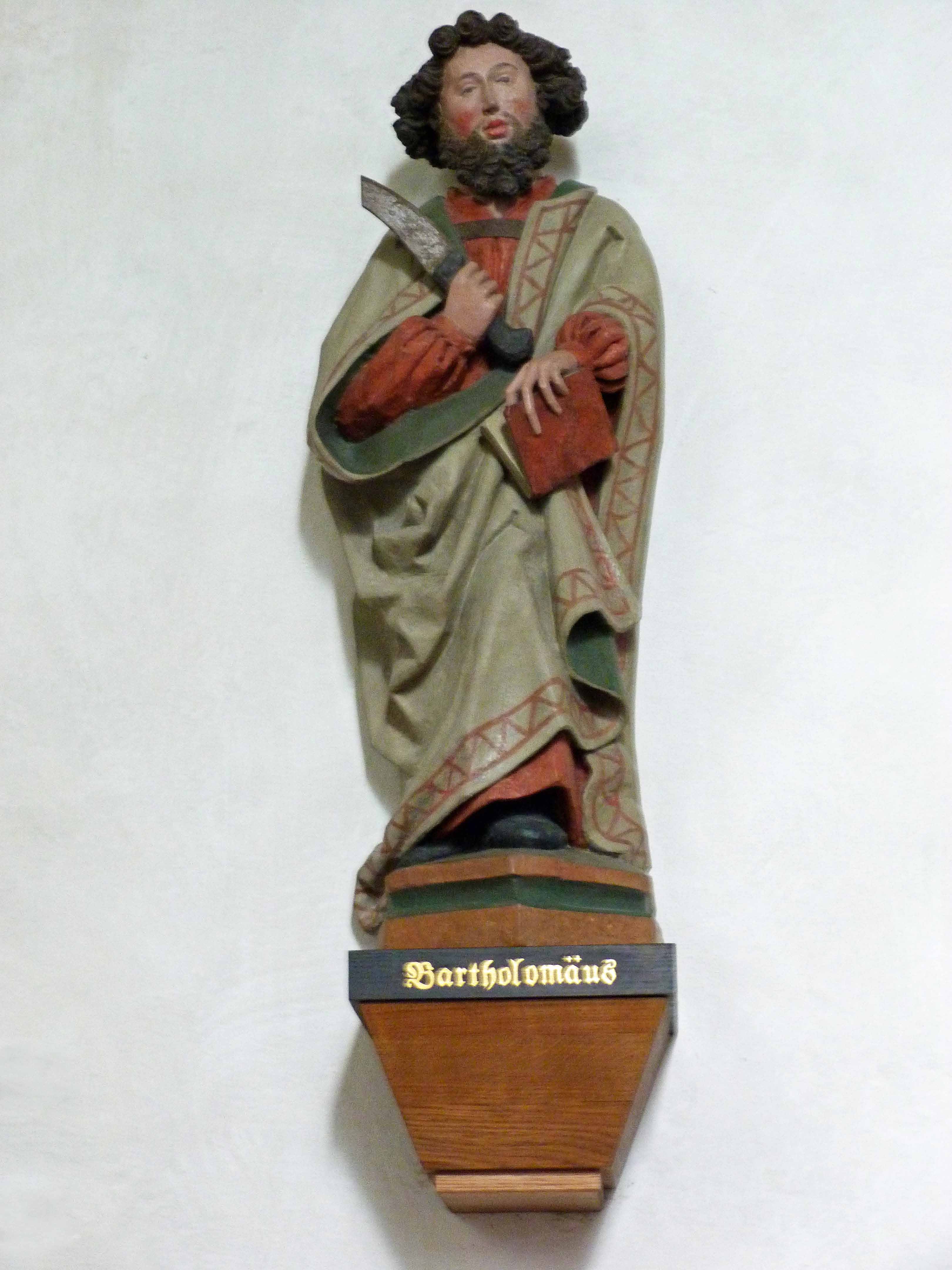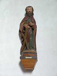 Der Namenspatron unserer Kirche in Rödinhausen war einer der zwölf Jünger Jesu und wikte als Missionar in vielen Ländern. Die Art seines Martyriums ist nicht genau bekannt. Vielleicht wurde er enthauptet, gekreuzigt oder gar gehäutet, eine in Persien im Jahre 51 übliche Todesstrafe.