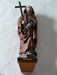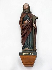 Jakobus der Jüngere, Sohn des Alphäus wurde so genannt,um ihn von dem Älteren bevorzugten Jünger Jesu zu unterscheiden. In der Bibel sind keine weiteren Angaben über das Leben und Wirken zu finden. Im Jahre 62 erlitt er sein Martyrium. Er wurde von der Zinne des Tempels gestürzt und mit einer Walkerstange erschlagen.
