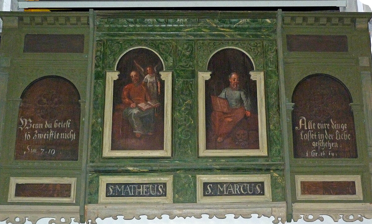Nach der Gotisierung der Kirche im 16. Jahrhundert sollten etwa 350 Jahre bis zum nächsten großen Bauvorhaben vergehen. Zu einem völligen Stillstand kam die Bautätigkeit jedoch nicht. So deuten die Jahreszahl 1647 auf der südlichen Empore - und die Beschaffung eines Abendmahlkelches im Jahr 1643 - darauf hin, dass die Bartholomäuskirche im Drei-ßigjährigen Krieg in Mitleidenschaft gezogen und anschließend repariert wurde. Was während des Krieges beschädigt wurde und ob nur die lange Empore neu hergestellt wurde, entzieht sich unserer Kenntnis.